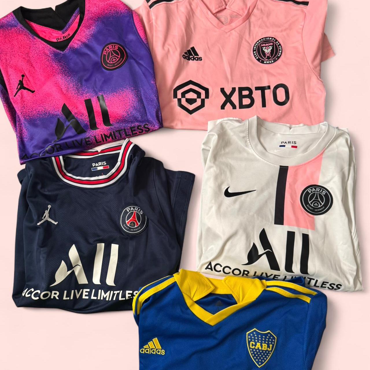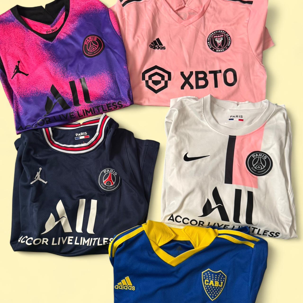 Messi Neymar Barcelona jerseys Boca juniors lot bundle soccer psg Paris jerseys barcelona, soccer jerseys, psg, paris saint-germain, boca juniors, football kit, sportswear, team bundle, player jerseys, athletic wear